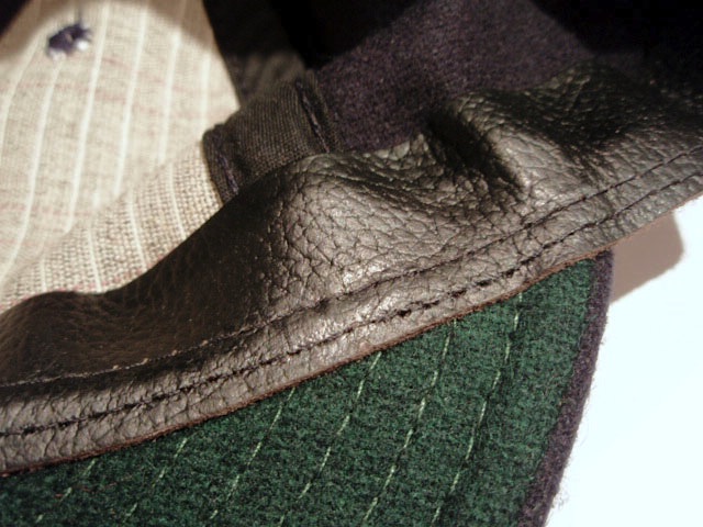 素材は主に12~13オンス のウールアスレチックフランネル、内側のスウェットバンドにはレザーを使用。